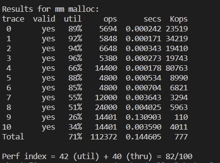 | Memory allocation using implicit free block tracking and next-fit method (0) | 2023.04.10 |