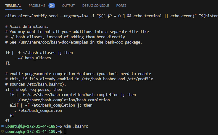 $ vim .bashrc