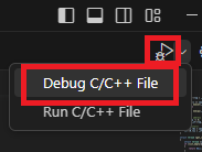 Debug C/C++ File 클릭