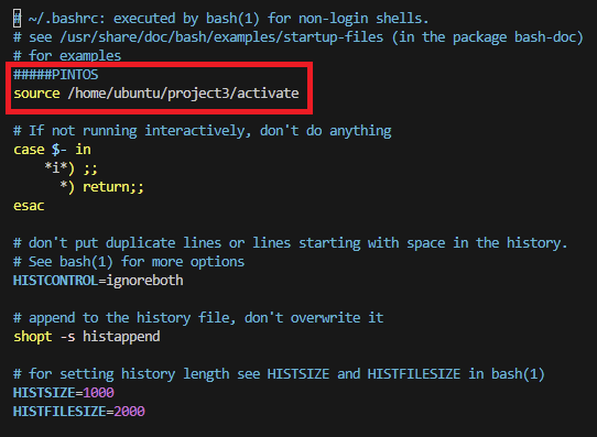 키보드 자판 [i] (insert) ".bashrc"에 코드에 추가