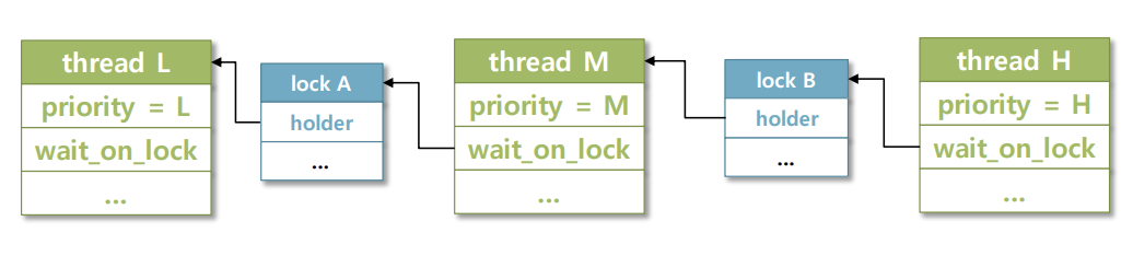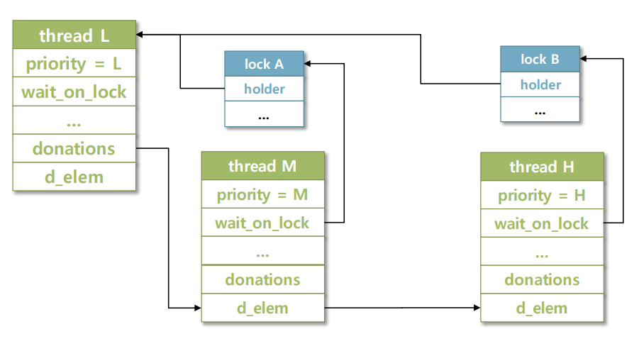 thread L의 donations에는 M과 H의 우선순위 정보가 들어있을 것이다.