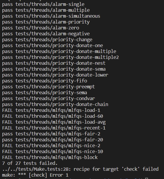 nested donation depth는 딱 정해진 숫자로 설정하는 것이 아니라, OS가 무엇인지 어떤 작업을 하는지에 따라 달라지는 값이라고 합니다. pintos과제에서 역시 depth을 8이 아닌 2로 설정해도 test가 통과되는 걸 확인할 수 있었다.
